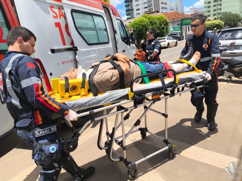 Com o impacto, eles caíram ao solo. O senhor que seguia na Rua José de Santana em sentido ao Bairro Várzea sofreu escoriações nas mãos, membros, costas e suspeita de fratura na perna direita. Familiares e pessoas que passavam pelo local o ampararam até a chegada do SAMU. Ele foi imobilizado e socorrido até a Santa Casa de Misericórdia. A motocicleta ficou com a frente danificada.