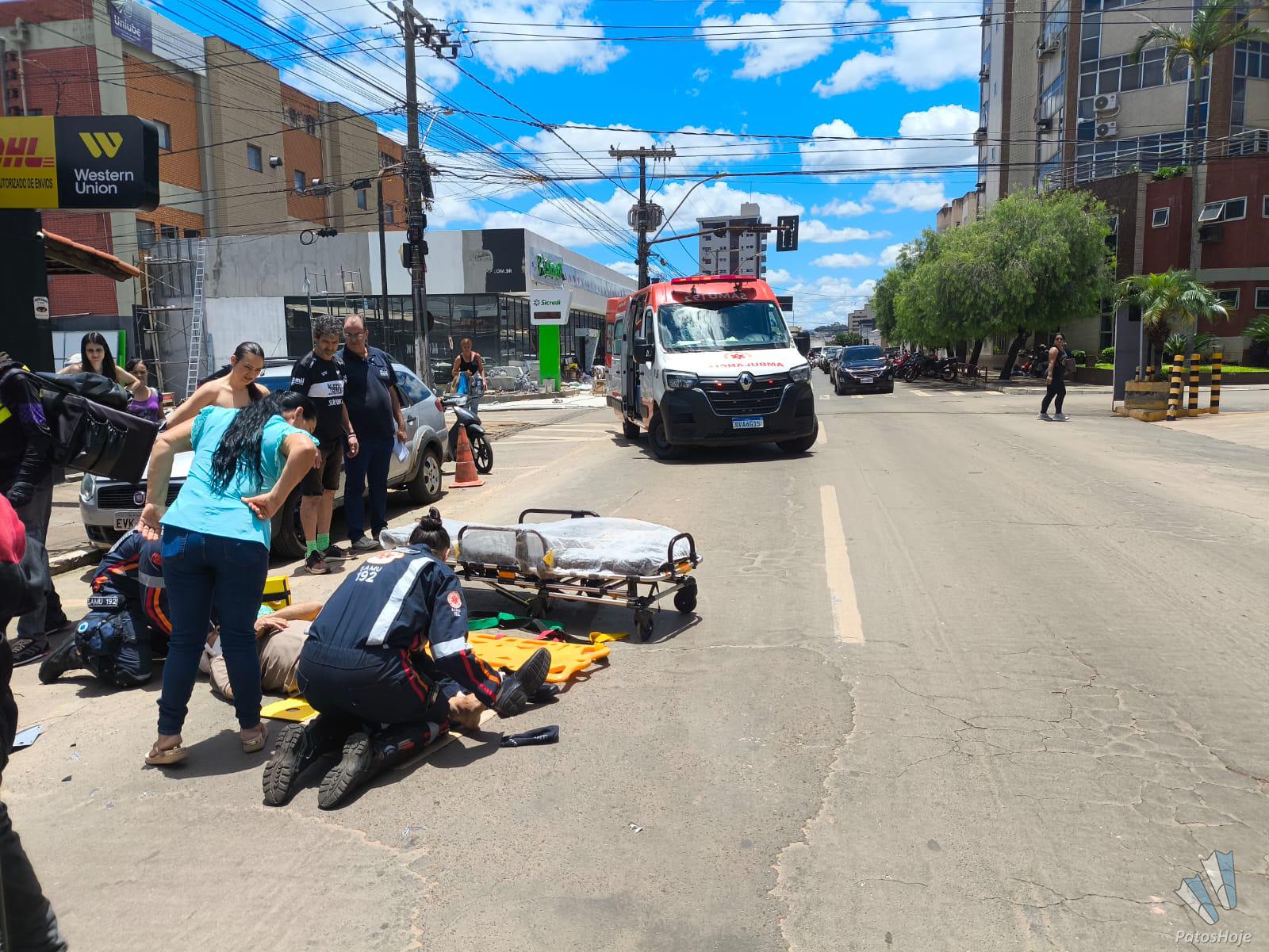 Os acidentes de trânsito continuam fazendo vítimas. No início da tarde desta sexta-feira (13), um senhor que tentava atravessar a Rua Doutor Marcolino acabou sendo atingido por uma motocicleta. O pedestre sofreu diversas escoriações e suspeita de fratura na perna. O motociclista teve pequenas escoriações.