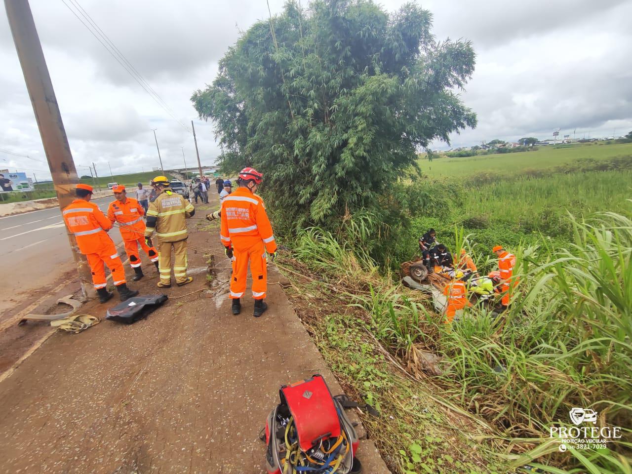 Segundo testemunhas, o veículo seguia pela Avenida JK, no sentido ao Trevo da Pipoca, quando a condutora perdeu o controle da direção. A picape, uma Fiat Strada, saiu da pista e, em seguida, desceu a ribanceira, parando capotada dentro da Lagoa do Patão.