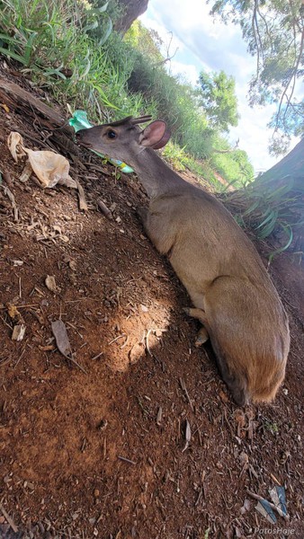 Os policiais informaram que, no local, foi constatado se tratar de um animal silvestre da espécie Veado Catingueiro, que aparentemente estava com dificuldades para andar e arrastava as patas traseiras. Diante disso, foi realizada a captura do animal silvestre que posteriormente foi entregue no CETRAS- Centro de Triagem e Reabilitação de Animais Silvestres- de Patos de Minas/MG para os devidos cuidados.