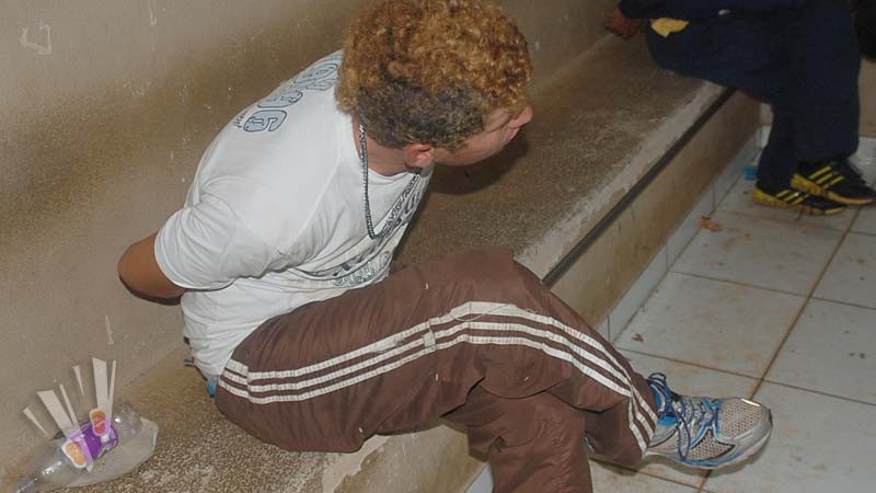Os policiais ainda notaram que o jovem usava duas roupas, provavelmente para tentar passar despercebido durante as abordagens. O outro jovem, Diogo Marques de Araújo, 28 anos, que havia sido preso no início da outra semana por furto de roupas , fora preso momentos antes. Ele transitava com Fagner portando uma arma branca.