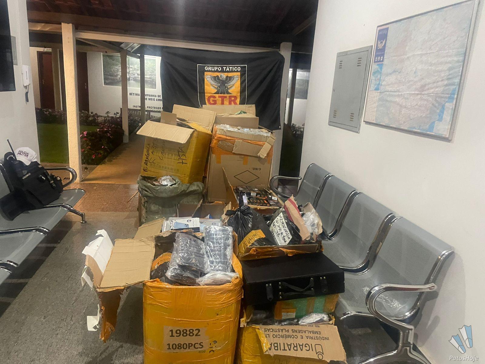 Entre as mercadorias apreendidas estavam grande quantidade de acessórios para equipamentos eletrônicos, acessórios para celulares como baterias, óculos de sol, além de brinquedos sem certificação do INMETRO. Os policiais também localizaram cigarros eletrônicos que estavam ocultos no fundo de uma das caixas transportadas no veículo.