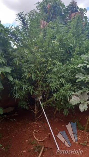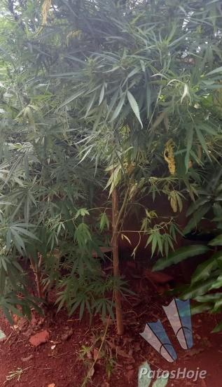Durante a ação, os policiais que estavam nos fundos avistaram dois pés de maconha de grande porte, com aproximadamente dois metros de altura cada, cultivados no quintal. Questionado, ele afirmou que os objetos furtados seriam trocados por drogas e que as plantas eram "hermafroditas" e destinadas a uso próprio.