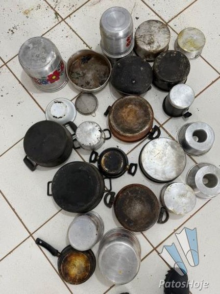 Durante as diligências, os militares foram abordados por outra testemunha, que disse ter visto um indivíduo pular o muro da residência de seu pai e se esconder em um imóvel na Rua José Marciano. No local, o suspeito não foi encontrado, mas a polícia localizou três sacos contendo panelas, molinetes e pedaços de fios elétricos — objetos que não pertenciam ao dono da casa.