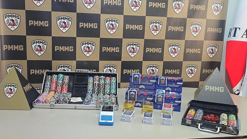 No interior do imóvel, foram apreendidas máquinas de cartão de crédito, materiais utilizados para jogos de baralho e diversos registros de apostas.