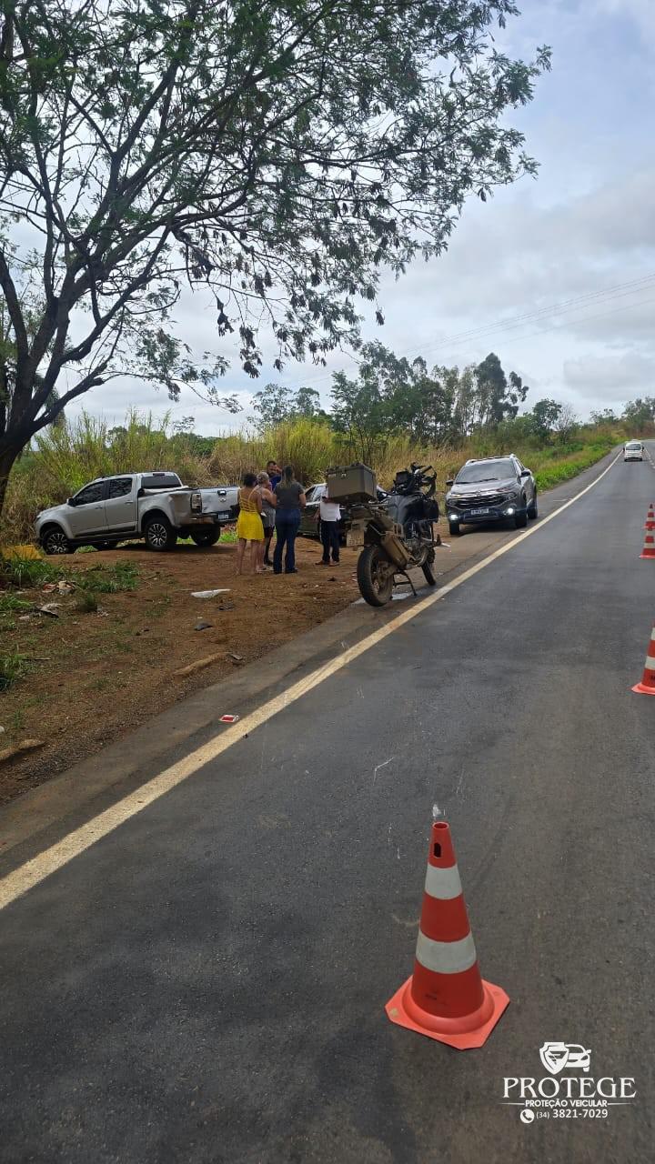 Um policial de 53 anos ficou ferido em um acidente, no início da tarde desta segunda-feira (03), na MGC-354, em Patos de Minas. A colisão lateral envolveu uma motocicleta Honda/CRF 1100L, conduzida pelo policial, e uma caminhonete GM/S10, conduzida por um homem de 52 anos.