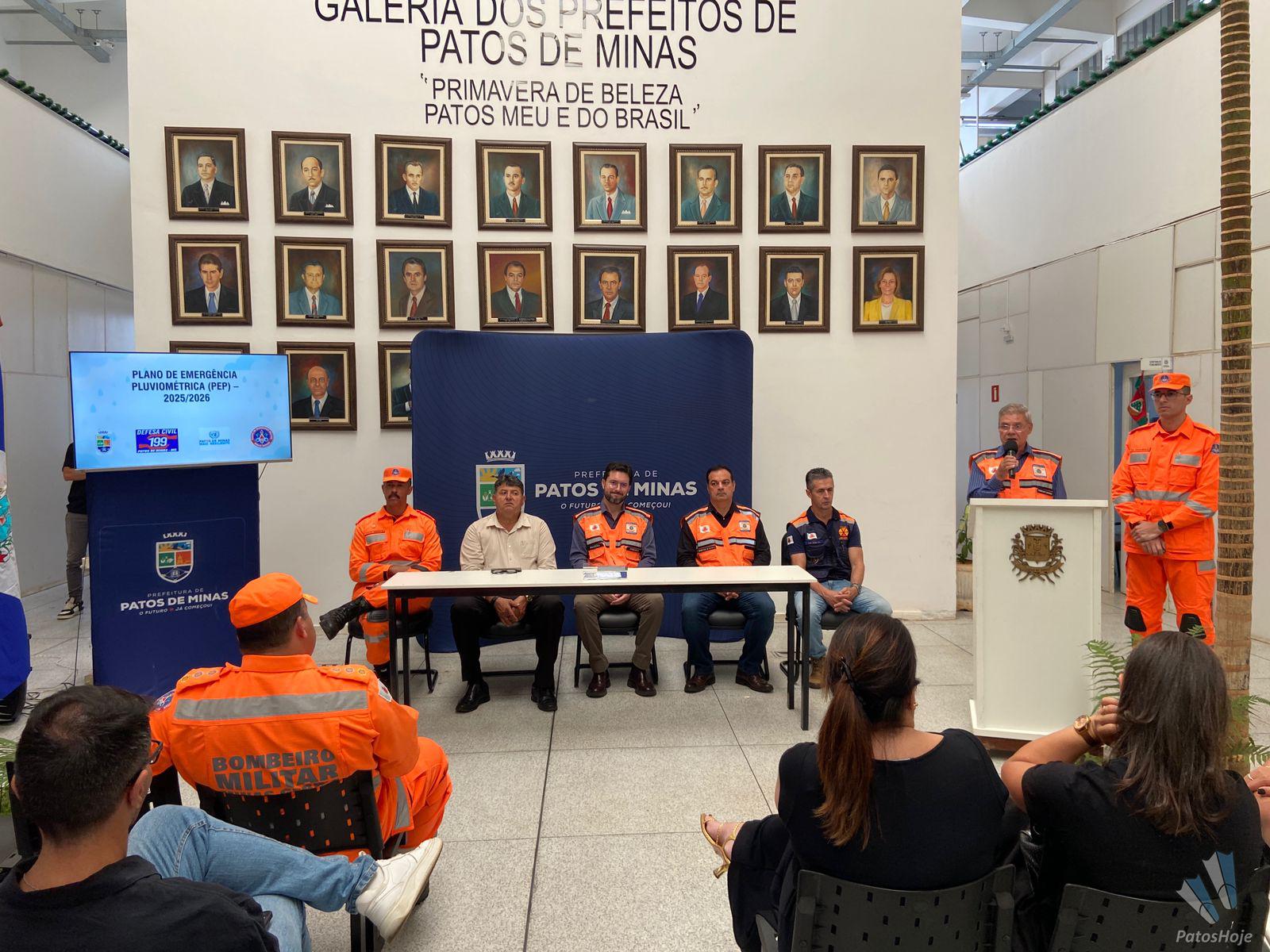 A Prefeitura de Patos de Minas, o 12° Batalhão do Corpo de Bombeiros e a Defesa Civil lançaram, na manhã desta quinta-feira (27), o Plano de Emergências Pluviométricas (PEP) 2025/2026, com objetivo de fortalecer as ações de prevenção e resposta a desastres naturais provocados por chuvas intensas. O PEP é elaborado em conformidade com as diretrizes da Organização das Nações Unidas (ONU), por meio da iniciativa “Construindo Cidades Resilientes – MCR2030”, destacando o compromisso do município com a redução de riscos e a proteção da população.