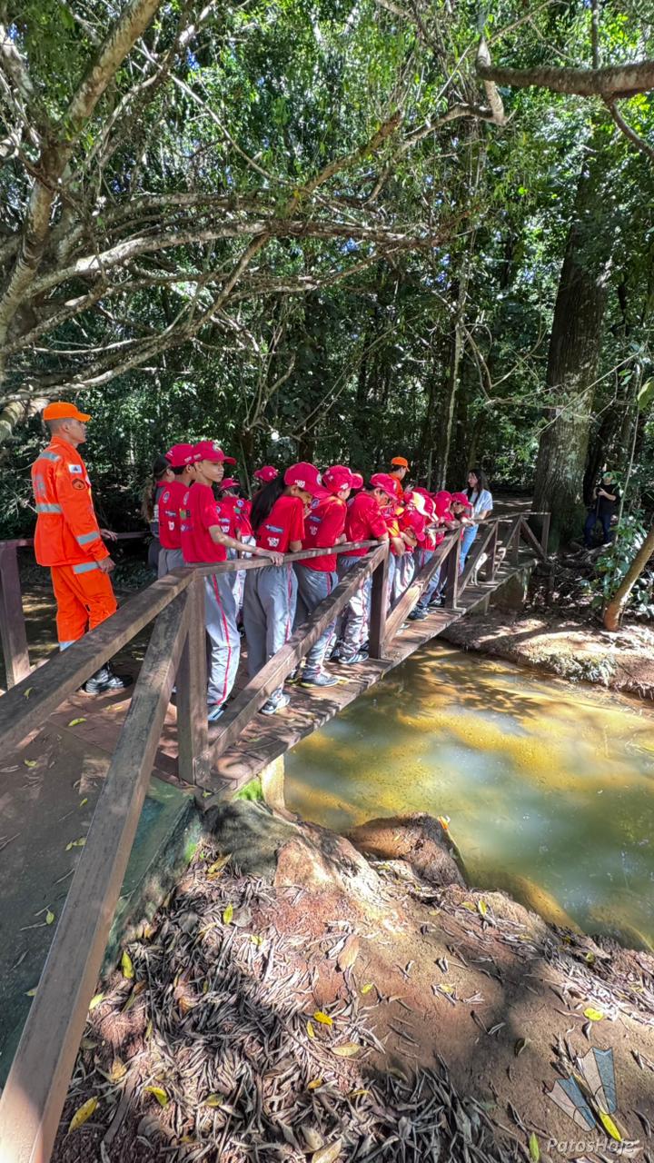 Na sequência, os estudantes realizaram uma visita guiada ao Parque do Mocambo, onde puderam vivenciar na prática conceitos relacionados à preservação ambiental e ao uso responsável dos recursos naturais. A atividade proporcionou contato direto com a natureza e reforçou a importância da conservação dos espaços públicos.