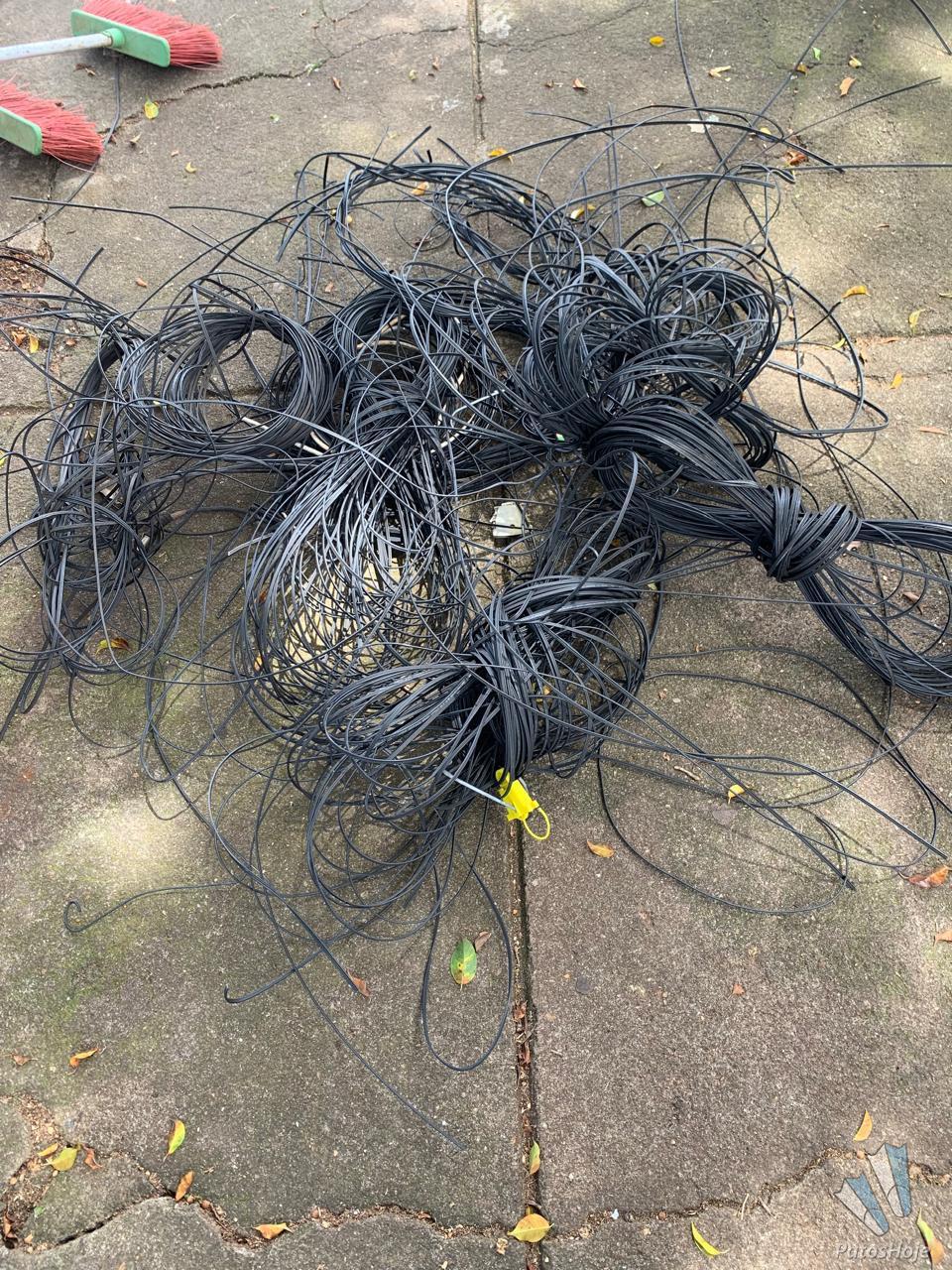 Um mutirão para retirada de fios soltos e inservíveis está sendo realizado, nesta segunda-feira (9), na rua Silva Guerra, no Centro, de Patos de Minas. A ação faz parte de um trabalho que já está em andamento no município para eliminar fios que oferecem riscos à população e também prejudicam a estética das vias públicas.
