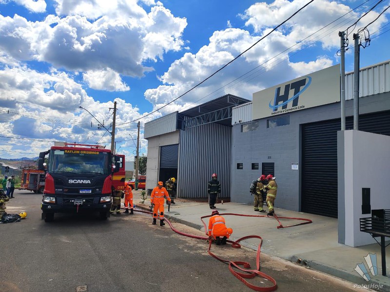 O Corpo de Bombeiros foi acionado no início da tarde desta terça-feira (17) para combater um incêndio em uma edificação industrial no Bairro Barreiro, em Patos de Minas. O chamado foi registrado por volta das 14h20 na Rua Luzia Gonçalves de Souza, esquina com a Avenida Angra dos Reis.