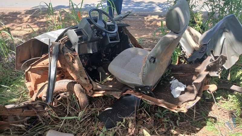 Um motorista de 38 anos ficou gravemente ferido após um acidente na tarde desta terça-feira (10) na MG-188, no município de Unaí. O carro que ele conduzia ficou completamente destruído após sair da pista e bater contra uma árvore.