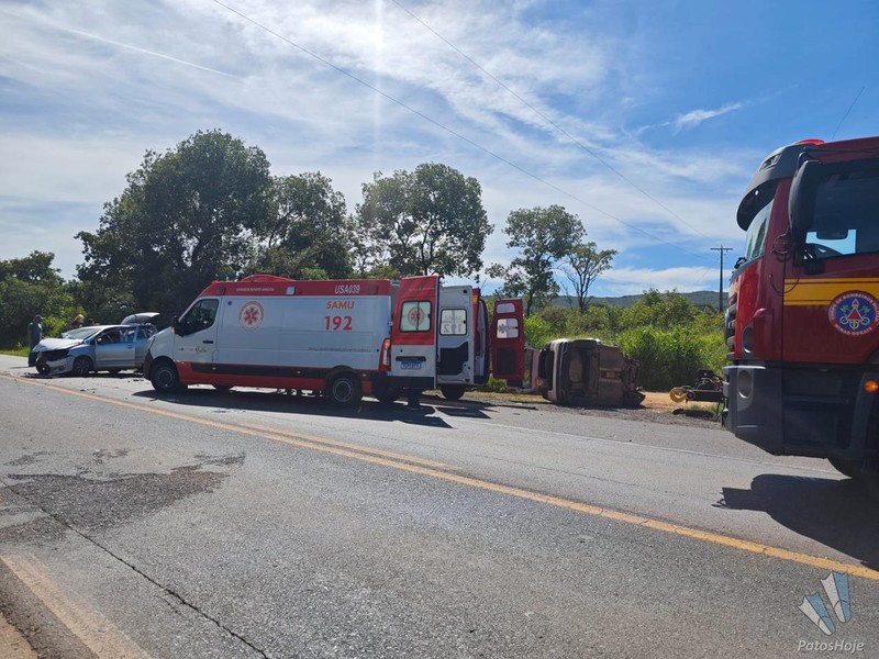 Um acidente de trânsito ocorrido na manhã desta sexta-feira (16) deixou três pessoas feridas na BR-365, no km 462, próximo ao Posto/Restaurante Caipirão, no município de Patrocínio. A ocorrência envolveu dois veículos, um VW Fox e um VW T-Cross.