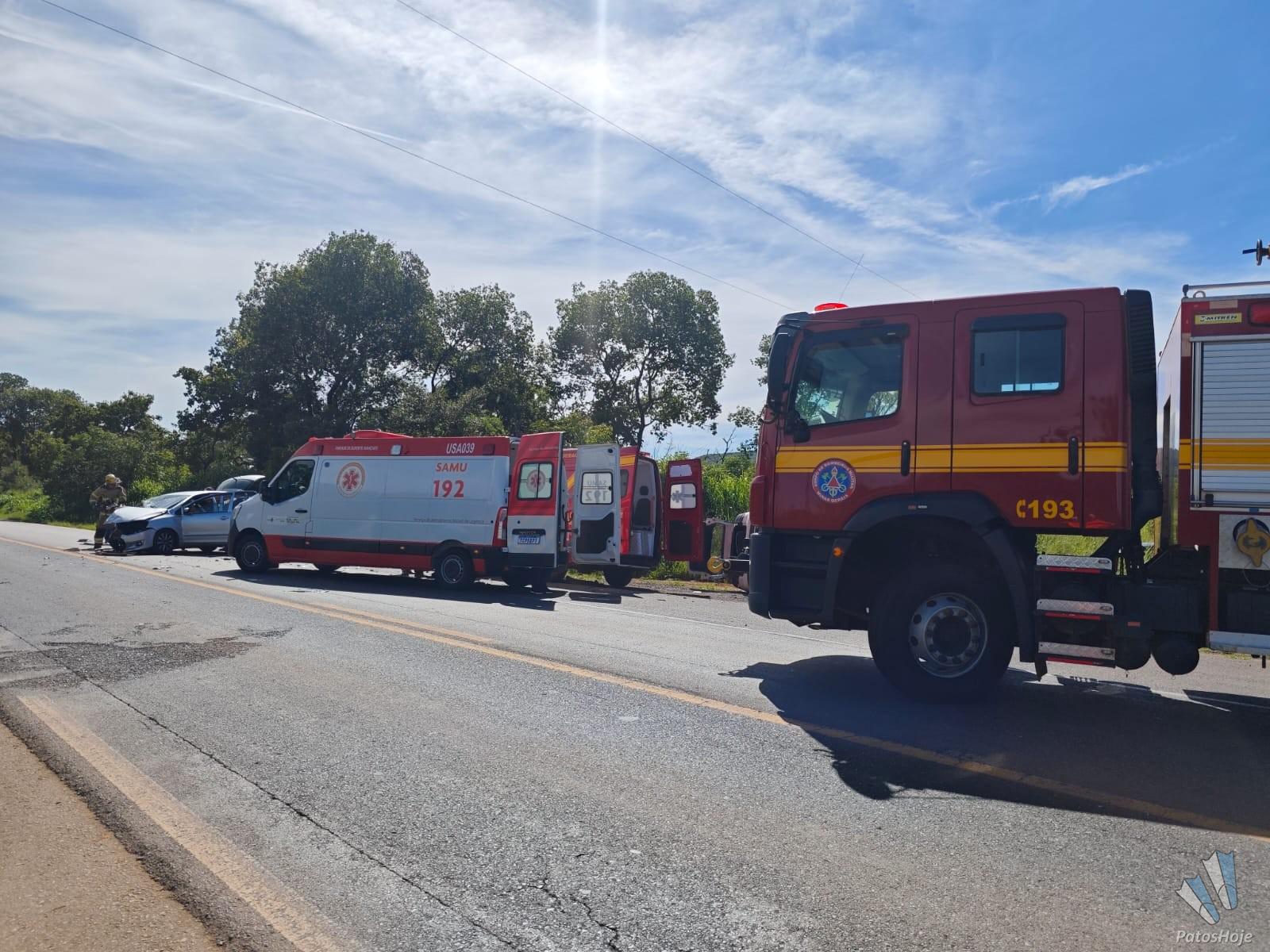 O Corpo de Bombeiros foi acionado e constatou que três pessoas ficaram feridas. A condutora do VW Fox, uma mulher de 65 anos, apresentava laceração na mão direita, ferimento na perna direita e diversas escoriações pelo corpo. Ela foi retirada do veículo pelo Corpo de Bombeiros em conjunto com a equipe do Samu, que deu continuidade ao atendimento pré-hospitalar e realizou o encaminhamento da vítima para a Santa Casa de Patrocínio.
