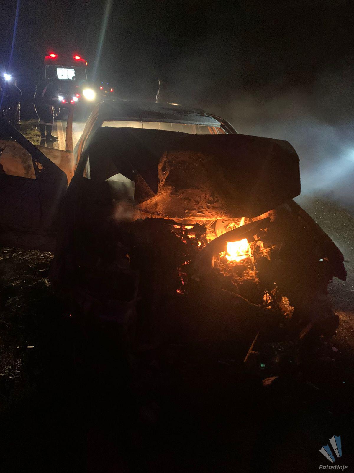 Um veículo foi encontrado completamente em chamas após um atropelamento de animal na noite desta segunda-feira (06), na altura do km 47 da LMG-628, em Unaí. Apesar do impacto, não houve registro de vítimas.