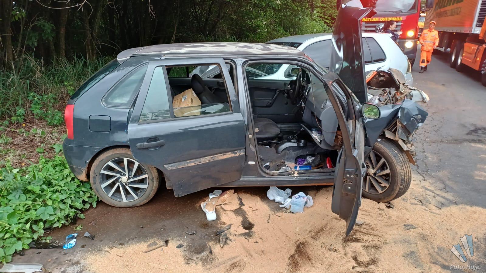 Com a força do impacto, os dois veículos foram arremessados para o acostamento do lado da pista no sentido Patrocínio a Patos de Minas. As imagens do local mostram danos nos automóveis, o gol ficou com a parte da frente destruída.